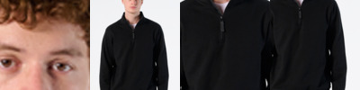 8 oz., stretch & sueded triblend terry; 51% rayon, 43% polyester, 6% elastine; 4-way stretch fabric with striped loop back yarns; Set-in sleeves & hand pockets; Self fabric collar, waist & cuffs;