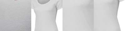 Lending a flattering fit and superior comfort, this fitted tee features capped cut tailored sleeves and a conservative scoop neckline.