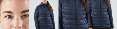 Thermal shell technology. PFC-Free durable water-repellent finish. Broken fibre polyfill. Packable into own pocket. Ergonomic fit. Adjustable hem. Audio system. Internal pocket.