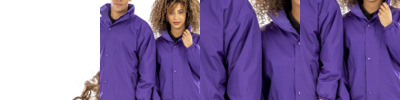 Outer Shell: 100% nylon satin ; Liner: 100% polyester brushed tricot; Water-resistant; Snap front; Raglan sleeves for maximum mobility ; Striped rib-knit collar cuffs and bottom band ; Front pockets; Tear away label;