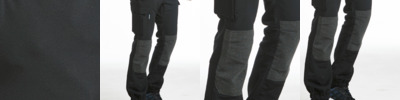 98% cotton/2% elastane. Kingsmill cotton stretch fabric. Ergonomic slim fit. High rise rear waistband with belt loops. Zip fly with branded button over. Two side pockets. Rear patch pockets. Ruler pocket. Multi-use cargo pockets. Pre-bent knees. Adjustable leg length reg 31" to tall 33". Bar tacking on all stress points. Branding on rear belt loop and right pocket seam.