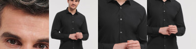 A unique and subtle comfort stretch from this advanced Elastomultiester Lycra® T400® fibre fabric creating a premium shirt that stays looking crisp and sharp all day long. Excellent shape retention for a lasting fit. Moisture management for cool comfort. Durable fabric. Fitted fit. Short leaf, semi cutaway collar. Narrow placket. Darts at back. Square edged cuffs. Cuff link options.
