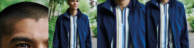 storm flap with snap closure at bottom; brushed tricot-lined collar and chin guard; centre front autolock zipper with reflective toggle; roll-away hood; elasticized cuffs; lower brushed tricot-lined concealed zippered pockets ; thermal retention shockcord at hood and drop back hem; audio port access through inside left pocket; reflective piping at shoulder yoke and back side panels;