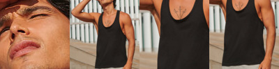 Tear-out SF (Skinnifit) label. Muscle-cut racer-back. Long-line. Self-fabric binding around neckline and armhole. Twin needle straight hem.