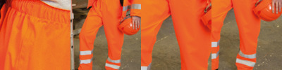 100% polyester. Conforms to EN ISO 20471: 2013 + A1: 2016 class 1. RIS-3279-TOM (orange only). Fully waterproof taped seams. Windproof. Elasticated waistband with drawcord. Two side access pockets. Rear key pocket. Two sewn on reflective bands around lower legs. Open leg ends with stud adjusters. No outside leg seam. Cut out label.