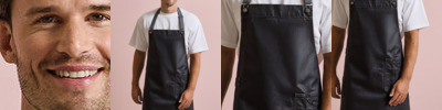 Acrylic coating for a waxed effect giving water repellent properties. 100cm ties and a brace style buckle fastened neckband with adjuster. Contrast jeans stitching and fabric features including, patch pocket and cloth holder. Measuring 86cm long and 72cm wide.