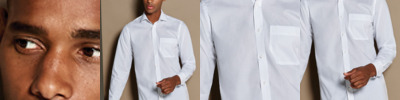 65% polyester/35% cotton. Easy iron fabric. Fused semi-cut away collar. Self colour buttons. Left chest pocket. Back yoke. Single needle stitched armholes. Twin needle sleeves and side seams. Two button adjustable cuffs with option for cuff links. Curved hem. Available in short sleeve K141.