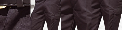 65% polyester/35% cotton. Traditional waistband - extendable at hip points. Belt loops. Zip fly with button over. Two side pockets. Rear concealed button pockets. Two side leg tear release cargo pockets.