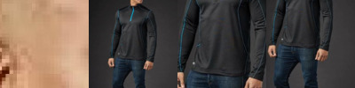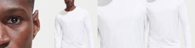100% polyester. Textured breathable fabric. Self fabric bound collar. Raglan sleeves. Drop hem. Twin needle sleeves and hem. Tear out label. Suitable for sublimation printing.