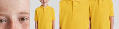 65% polyester/35% cotton. Ribbed collar and cuffs. Taped back neck. Two self colour button placket. Reinforced shoulder seams. Cut out label. 60°C wash.