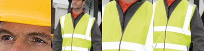 100% polyester. Conforms to EN ISO 20471: 2013 + A1: 2016 class 2. RIS-3279-TOM (orange only). Grey polyester bound edges. Tear release front closure. Two reflective bands around the body and one over each shoulder. Generous in size allowing to be worn as an over garment. Cut out label.