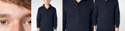 Fashioned v-neck. Set-in sleeve. Knitted saddle shoulder. Knitted rib neck, cuff and welt. Modern unisex fit.