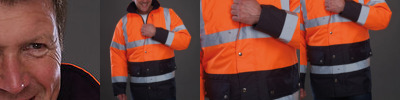 Conforms to EN ISO20471:2013 Class 3 and EN343:2003 + A1:2007 Class 3.1 against foul weather; Hi Vis Orange/Navy conforms to RIS-3279-TOM; Waterproof PU coated 300D Polyester with 190gsm quilted padding and Nylon lining; Two 5cm 3M reflective tapes around the body and arms, and one over each shoulder; Navy contrast helps to provide a corporate image and hide scuff marks; Heavy duty zip under the studded storm flap; Two outer pockets with storm flaps; Knitted storm-cuffs in the sleeve ends; Concealed hood with draw cord; Inside breast pocket; Stitched and taped seams to ensure waterproof; Matching trousers, codes HVS461 and HVS462 and HVS463.