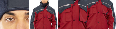 Full front heavy duty zip. Zipped side pockets. Hand filled wadding. Stud closing stormflap. Zip-off adjustable lined hood with stud fastening chin guard. Zipped inside chest pocket. Elasticated grip around waist and armholes. Cold weather core protection
