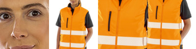 EN ISO 20471:2013+A1:2016 CLASS 2; RIS-3279-TOM (ORANGE ONLY). Lightweight and warm. Soft stretch. Printable. High visibility. Reflective safety body bands. Hang tag. Dark lower panel masks grime. Soft bound cuff. Stand-up collar. Quiet to wear. Zipped pockets. Ready to brand tag free. Decorating methods: Embroidery. Decorators access point: Hidden chest and back zips on navy side.