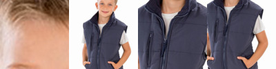 Peached polyester microfibre quilted outer. Polyester inner and polyester Active Fleece lining. Showerproof and windproof. Concealed hood in the collar. Collar high full length zip. Right chest zip pocket. Two front zip pockets. Reflective triangle on front and reflective patch centre back. Cut out label. Access for decoration.