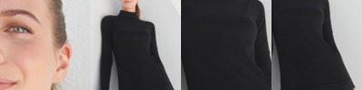 96% cotton/4% elastane. Single jersey. Stretch fabric for a modern fit. Enzyme wash. Soft feel. Fitted style with shaped side seams. Self fabric roll neck. Longer length. Twin needle sleeves and hem. Tear out label.