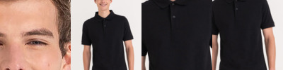 Modern and stylish fit with short sleeves and side vents. Two button placket with dyed-to-match buttons and spare button. 1x1 ribbed flat collar and cuffs. Cuffed sleeves. Taped neck. Twin-needle stitching detail on sleeves and bottom hem. Size label only, for easy rebranding - colour coded black for Unisex. Short sleeves. Excellent surface for printing and embroidery.