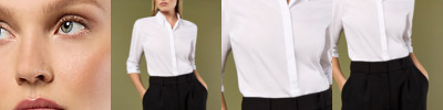 Fitted. Concealed placket, side vents, cuff vent. Rounded hem. Spare button. Fused collar. Back darts. Easy iron fabric. Size Bust (to fit) 8 10 12 14 16 18 20 22