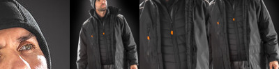 Full front heavy duty zip. Fully taped seams. Tear release storm flap. Concealed hood with adjustable drawcord. Deep front patch pockets, with soft feel microfleece hand warmer packet access. Semi detachable left chest pocket with tear release/stud and zip closure for access or decoration. Multi-feature right chest pocket. Inside chest pocket. Reflective detail across chest and pockets. Elasticated cuff with tear release adjuster. Diamond quilted lining. Interchangeable colour zip pull system. Hanging loop. Soft feel microfleece lined stand-up collar. D Ring. Critical seam twin needling.