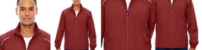 Water-repellent finishá; 96% polyester 4% spandex, 7.5 oz./yd2/255 gsm; Bonded w/100% polyester fleece; inside storm placket with fleece chin guard; center front reverse coil autolock zipper with reflective toggle; lower front reverse coil zippered pockets with reflective toggles; audioport access through inside left pocket;