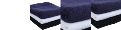 100% cotton. Luxurious thick pile terry towelling. Flat weave border (11cm). Excellent absorbency qualities. Hanging loop.