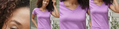 A fashionable, fitted silhouette, the ladies? Softstyle? is the perfect weight to wear on its own or with your favorite layering pieces. 100% cotton*, 4.5 oz. preshrunk jersey body, rib-knit neck, taped neck and shoulder seams, double-needle cover-stitched neck, double-needle hemmed sleeves and bottom. Imported. S-2XL, 3XL ? Available only in Black (BLK), White (WHT) and Sport Grey (SPG). *Fiber content on heather shades is 65% polyester/35% cotton, Sport Grey is 90% cotton/10% polyester. Heather Navy, Heather Purple and Dark Heather priced as colors.