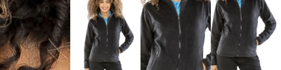 70% cotton/30% polyester. Drop shoulder style. Ladies fit. Double fabric hood with self colour flat drawcord. Narrow full length covered zip. Front pouch pockets. Cotton/elastane ribbed cuffs and hem. Cut out label.