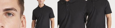 SuperCooltm fabric with superior wicking properties and anti-bacterial finish. Flat knit rib collar. Self fabric sapphire blue taped neck. Three button placket with self colour buttons. Self fabric cuffs. Self fabric side panels.