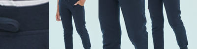 60% cotton/40% polyester.* Brushed back fleece. Ribbed elasticated waistband with flat lace mock drawcord. Two side pockets. Rear patch pocket. Ribbed cuffed leg ends. Tear out label.