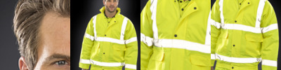 300D PU coated oxford polyester outer. Polyester filling and quilted lining. Conforms to EN ISO 20471: 2013 + A1: 2016 class 3, EN343: class 3.1. RIS-3279-TOM (orange only). Waterproof 1000mm with taped seams. Windproof. Concealed adjustable hood. Full length heavy duty zip with studded storm flap. Two reflective bands around the body, sleeves and one over each shoulder. Two front pockets. Inner pocket. Elasticated hem. Cut out label. Access for decoration.