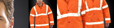 300D PU coated oxford polyester. Conforms to EN ISO 20471: 2013 + A1: 2016 class 3, EN343: class 3.1. RIS-3279-TOM (orange only). Waterproof 1000mm with taped seams. Windproof. Concealed adjustable hood. Full length two way-zip with studded storm flap. Two reflective bands around the body, sleeves and one over each shoulder. Two front pockets with storm flaps. Inner pocket. Cut out label. Access for decoration.