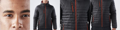 STORMTECH D/W/R durable water resistant outer shell. Quilted body with ultra soft liner. Centre front vislon zipper with contrast zipper teeth. Elasticized cuffs. Attached hood. Adjustable hem. Set-in sleeves. Brushed tricot hand warmer pockets. Zippered pockets with garages. Chin saver. Internal full-length storm flap. Inside pocket. Internal media port. Embroidery access.