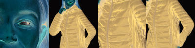 Polyamide outer.* Polyester padding and lining. Warm and ultra-lightweight. Grown on hood with contrast lining, navy has self colour. Bound hood, cuffs and hem. Full length low profile zip with inner zip guard. Two front zip pockets. Packs away into storage bag.