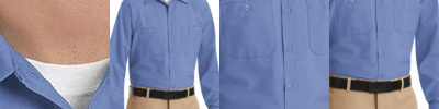 button-down collar; durable flat felled side and underarm seams; back waist darts;
