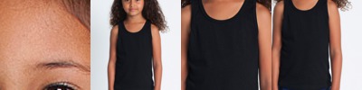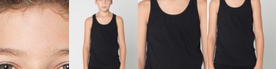 - Seamless rib at neck; Shoulder-to-shoulder tape