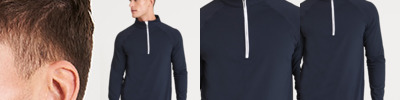 87% polyester/13% elastane. CoolFit™ matt finish performance fabric with superior wicking properties. UPF 40+ UV protection. Slim fit. Stand up collar. Raglan sleeves. Zip neck with chin guard. Self fabric contrast bound zip, cuffs and hem. Reflective tab on back of neck to help keep ear phones in place. Tear out label.