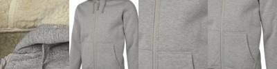 65%Polyester 35%Cotton jersey Bonded with 100% polyester shepherd fleece for comfort,430gsm bonded Jersey with shepherd fleece,Contrast shepherd fleece lining,2x2 rib sleeve cuffs and bottom hem with elastane,Full zip opening,Kangaroo pockets,Adjustable Hood drawcord,Set-in sleeves