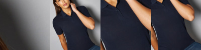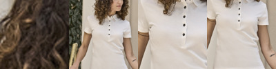 95% organic ringspun combed cotton/5% elastane. Mini piqué. Fitted style. Flat knit collar and cuffs with elastane. Taped neck. Three button placket with self colour branded buttons. Side vents. Twin needle hem.