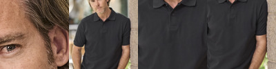 50% cotton/50% polyester. 1x1 ribbed collar. Self fabric taped neck. Two button placket. Twin needle sleeves and hem. Removable adhesive neck label. 60°C wash.