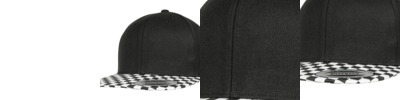 Checkerboard snapback cap. Sturdy, flat visor. Patented snapback closure.