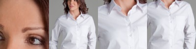 5.6-oz, 67/30/3 cotton/polyester/spandex stretch poplin. Classic fit.
