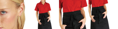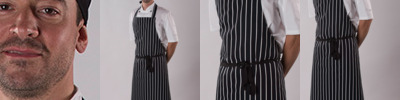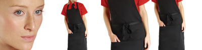 65% polyester/35% cotton. Self fabric neckband. Anti-tangle ties. Single front pocket. Width 71cm. Length 91cm. Industrial or domestic wash 65°C. Branded tab on left.