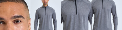 Contrast ¼ zip. Long sleeves. Stretch. Twin-needle stitching. Wicking fabric. We recommend using block out vinyl and inks.Product contains no branded neck or waist label. Removable Kimble or looped garment tags. Inner seam label holds important product information on one label with a second label containing brand information which can be cut-away. UPF 40+.