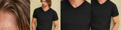 100% cotton. Ribbed V neckline. Self fabric taped neck. Tubular body. Twin needle sleeves and hem. Cut out label.