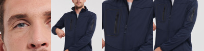Three layer natural stretch polyester soft shell outer. Knitted lining. Showerproof and breathable membrane. Soft touch inner collar. Full length YKK zip with chin guard and inner zip guard. Articulated elbows. Stretch underarm panels. Sealed pockets with waterproof zips on right chest and left sleeve. Inner pocket with audio port. Two front zip pockets. Adjustable cuffs. Curved drop hem. Access for decoration.