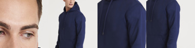 100% polyester. Brushed back fleece. Drop shoulder style. Three panel double fabric hood. Self colour round drawcord with metal tips. Front pouch pocket. Self fabric cuffs and hem. Twin needle stitching. Tear out label.