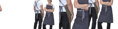 12-oz, 100% cotton. Soil release finish for added stain protection. 3-pouch pockets and a pen pocket. 23"W x 11"L.