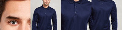 100% polyester. Easy care, moisture wicking fabric. Ribbed collar and cuffs. Three self colour button placket. Panelled detail for more fitted shape. Side vents. Longer length.