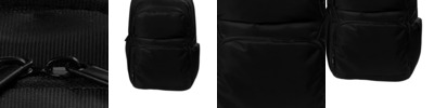 This modern backpack has it all! Designed to easily transition from home to the office, this backpack features zippered organization pockets and a dedicated laptop compartment. 200 denier mini grid dobby polyester Spacious main compartment Dedicated back laptop compartment Top front zippered valuables pocket Front zippered pocket with organization panel Side mesh pocket Side zippered pocket Padded air mesh back panels and shoulder straps Adjustable slide sternum strap Integrated carry handle Metal zipper pulls Luggage trolley pass through on back Laptop dimensions: 16'h x 12'w x 1'd; fits most 15' laptops Dimensions: 17.5'h x 12'w x 7.5'd; Approx. 1,575 cubic inches Note: Bags not intended for use by children 12 and under.